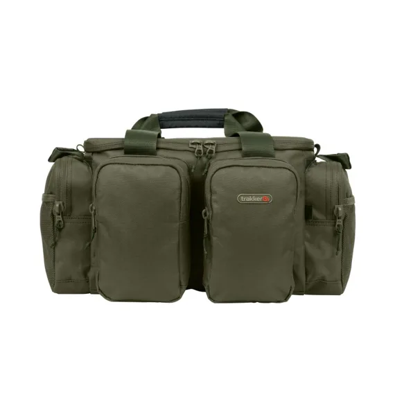 Taška je vybavena pěti prostornými vnějšími kapsami, které poskytují bohatý prostor pro různé typy rybářského příslušenství i další pomůcky. Zpevněné víko hlavního oddílu lze využít jako praktický stolek do bivaku, což zvyšuje celkový komfort při přípravě montáží nebo práci s vybavením. Robustní dvojité zipy podporují rychlý přístup a spolehlivé používání za každého počasí i při delších výpravách.