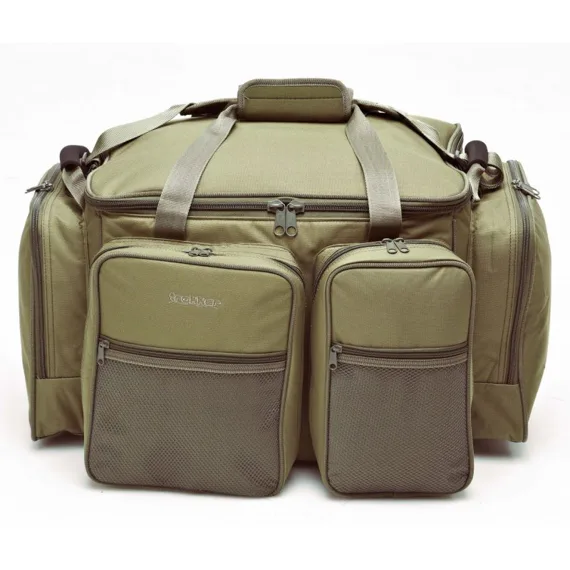 Model je vybaven pěti vnějšími polstrovanými kapsami, které nabízejí prostor pro uložení menšího příslušenství, jako jsou PVA tubusy či další drobnosti. Dvojité síťované kapsy na zip v přední části umožňují přehledné uložení věcí, které chcete mít neustále po ruce, a usnadňují rychlou orientaci v celém obsahu tašky. Velkorysá kapacita podporuje efektivní uspořádání vybavení a udržení pořádku během celé výpravy.