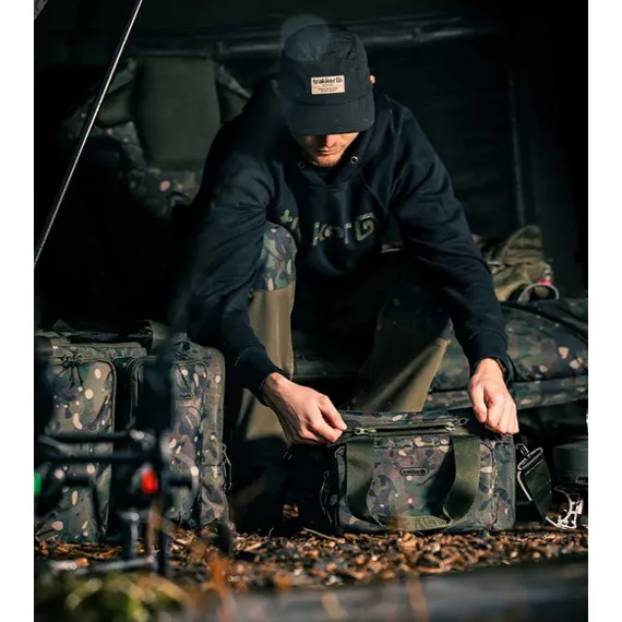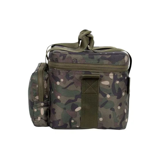Model disponuje rozměry 35 × 30 × 23 cm a kapacitou přibližně 24 litrů, což poskytuje dostatek místa pro potraviny i návnady během delších výprav. Hmotnost činí 1 kg, takže taška zůstává snadno přenositelná a praktická. Konstrukce je vyrobena z odolného polyesterového materiálu, doplněná voděodolnou PVC základnou a camo látkou n-dura Performance, která podporuje dlouhou životnost i spolehlivou funkčnost v terénu.