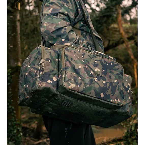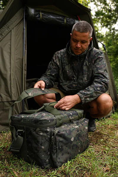Taška je vybavena robustní PVC základnou, která zajišťuje odolnost vůči vlhkosti a drsnému povrchu. O pohodlné nošení se stará odnímatelný, polstrovaný ramenní popruh a neoprenové rukojeti pro komfortní úchop. Materiál N-Dura Performance v camo designu zajišťuje vysokou odolnost a dlouhou životnost. S kapacitou cca 50 litrů je tato taška ideální volbou pro rybáře, kteří chtějí mít potraviny i vybavení přehledně uložené na jednom místě.
