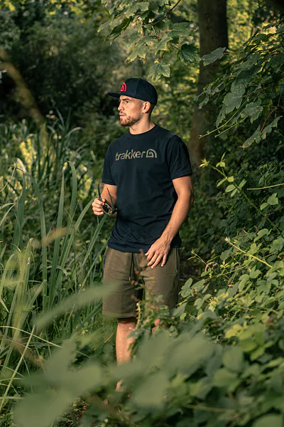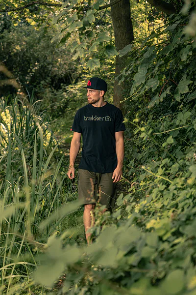 Pohodlné tričko v černé barvě, vyrobené ze super měkké bavlny s logem na hrudi a velkou ikonou Trakker zádech.