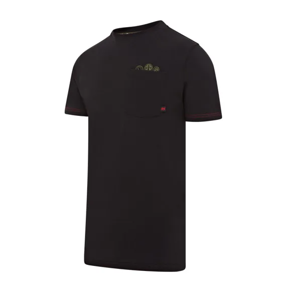 Tričko v černé barvě se speciálním designem a malou kapsou na prsou.