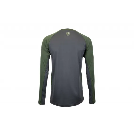 Kombinace tónovaných panelů v šedé a khaki barvě je estetická, ale především funkční díky extrémně prodyšným sekcím umístěným na zádech a v podpaží, kde se tělo nejvíce zahřívá. Tyto části zajišťují efektivní ventilaci a pomáhají udržet optimální tělesnou teplotu i během intenzivního rybolovu. Díky slim-fit střihu triko perfektně přiléhá, kopíruje pohyb a nijak nepřekáží při sportovním výkonu.