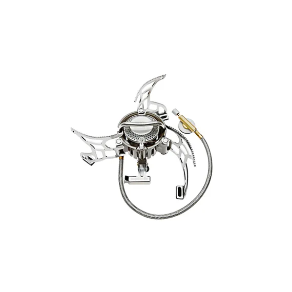 Vařič je vybaven piezo-elektronickým zapalováním, které je zabudované ve spodní části pro co nejpohodlnější a nejrychlejší použití bez nutnosti externího zapalovače. Protiskluzová guma na spodní straně nohou pomáhá udržet vařič bezpečně na místě, což minimalizuje riziko převržení během vaření. Celkové provedení je navrženo tak, aby v terénu poskytovalo maximální jistotu a jednoduchou obsluhu.